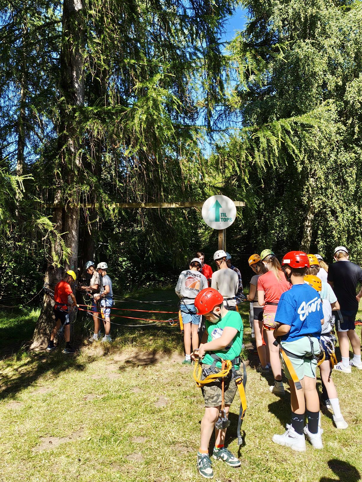 Klättra bland trädtopparna! Du tar dig upp i träden med hjälp av repstegar. Man tar sig från träd till träd via olika hinder, och ner igen med linbana.