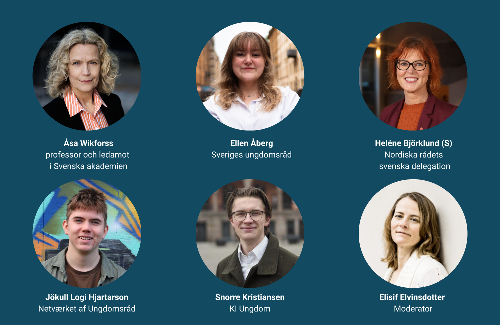 09.10-10.00: Paneldiskussion, deltagare: Åsa Wikforss, Ellen Åberg, tidigare ordförande Sveriges ungdomsråd, Snorre Kristiansen, daglig leder, KI Ungdom, Norge samt Jökull Logi Hjartarson, ordförande, Netværket af Ungdomsråd Danmark.